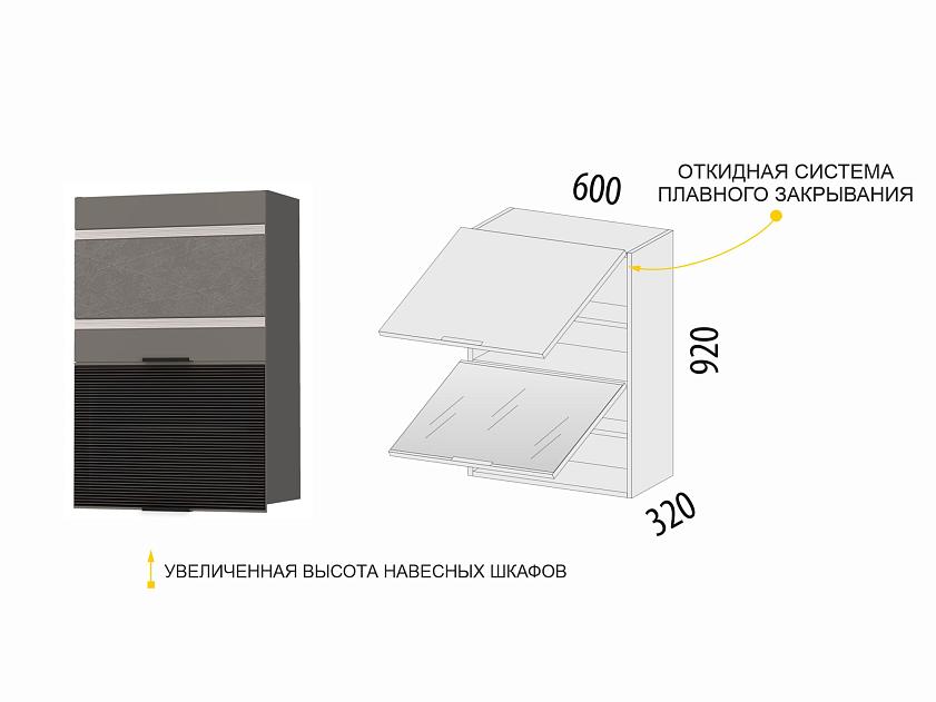 Модуль оснащен подъемным механизмом с откидной системой, который обеспечивает плавное закрывание дверцы и