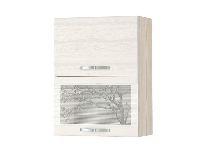 Фасад с рисунком на стекле придает кухне изысканный внешний вид.