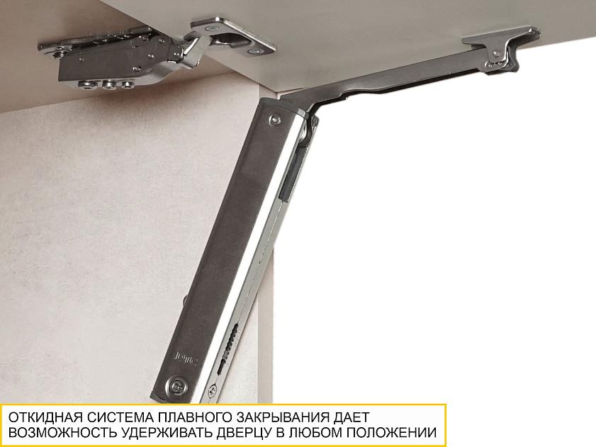 Модуль оснащен подъемным механизмом с откидной системой, который обеспечивает плавное и бесшумное закрывание дверцы и возможность удержать ее в любом положении.