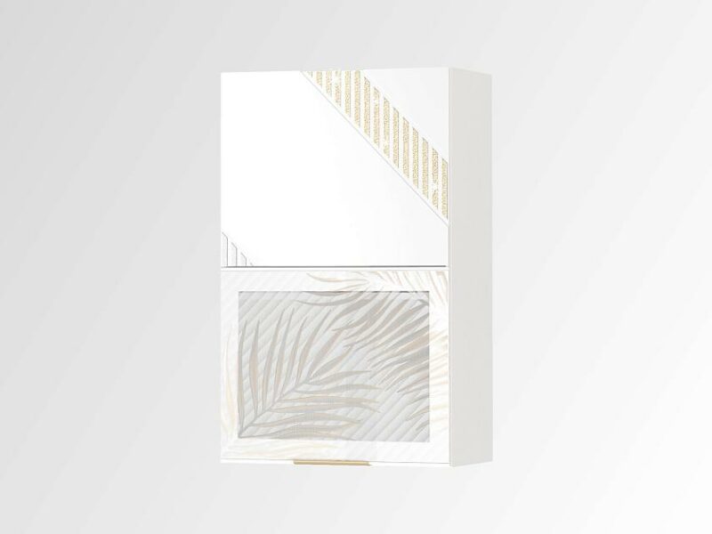 Деликатное мерцание «золота» добавляет мягкое сияние. Чистота осветлённого стекла Crystal подчёркивает сложность рисунка, превращая витрину в элегантный акцент кухни.