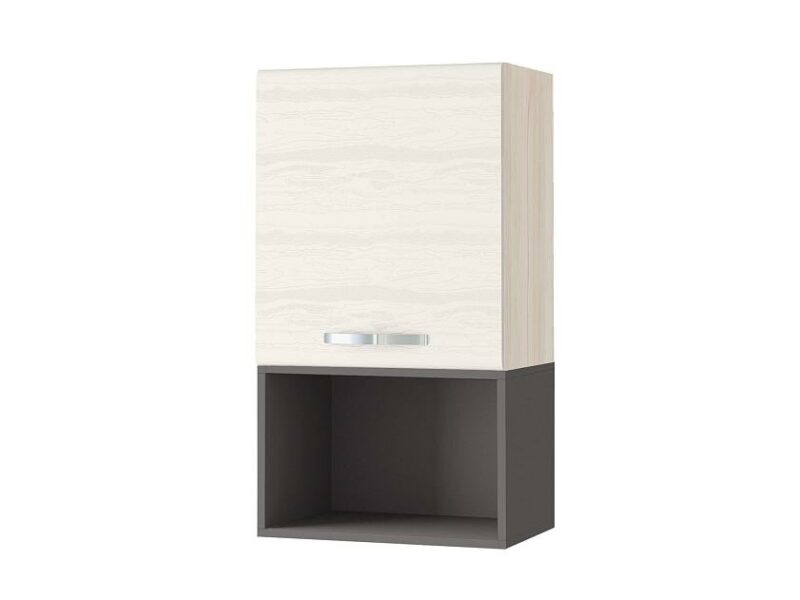 Дополнением к шкафу служит открытая полка, которая идеально подойдет для хранения специй, посуды и других полезных мелочей.