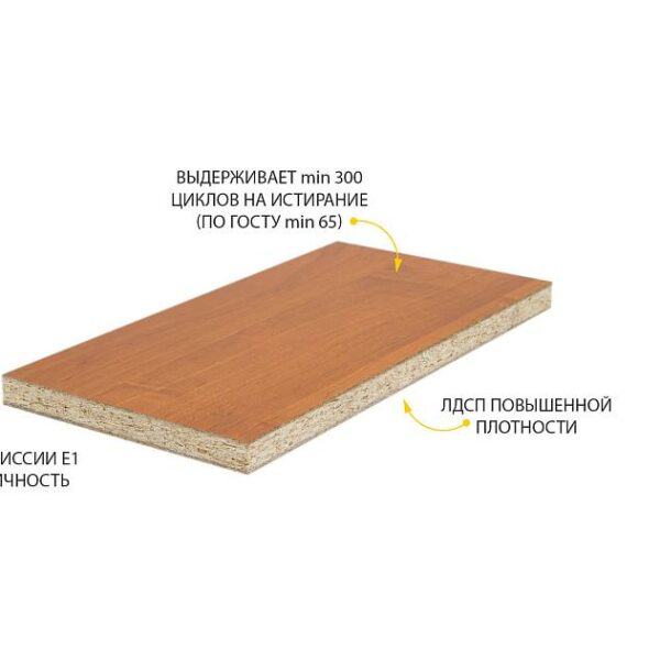 ЛДСП выдерживает min 300 циклов на истирание, что почти в 5 раз больше, чем требуется по ГОСТу (min 65).