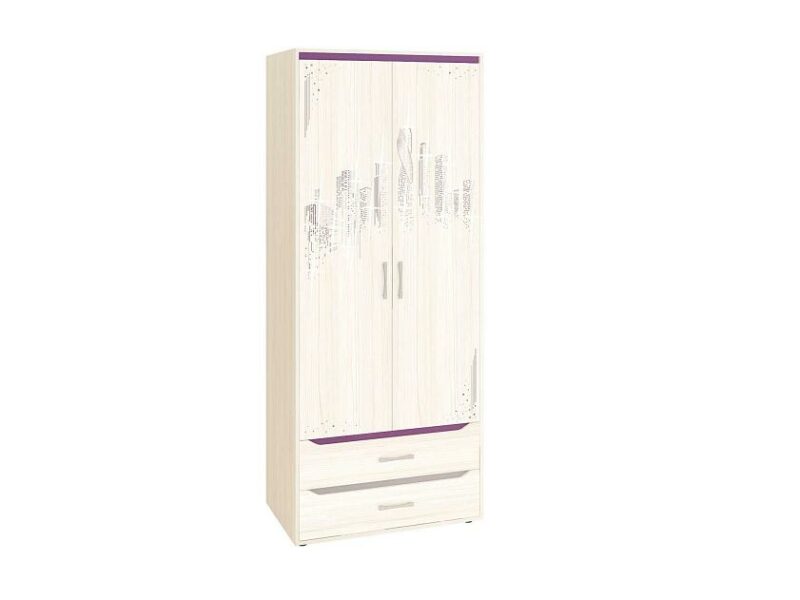 Шкаф для одежды «Мегаполис 55.01.1» является частью модульного набора серии «Мегаполис». В левой части шкафа установлена штанга для хранения одежды на плечиках, в правой части расположены полки. В нижней части шкафа установлены два выдвижных полновыкатных ящика. Шариковые направляющие обеспечивают плавный бесшумный ход и длительный срок эксплуатации изделия. Плавное закрывание дверок обеспечивают петли с доводчиками. Ножки модуля регулируются по высоте, что позволяет при установке шкафа компенсировать возможные неровности пола. Шкаф можно использовать не только в сочетании с другими модулями подростковой, но и как отдельный предмет мебели.