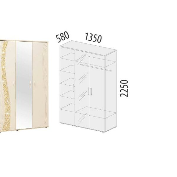Шкаф произведен из МДФ и ЛДСП повышенной плотности. Материал устойчив к механическим и термическим воздействиям. ЛДСП выдерживает min 300 циклов на истирание, что почти в 5 раз больше, чем требуется по ГОСТу (min 65).