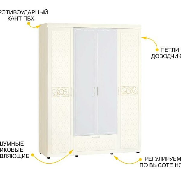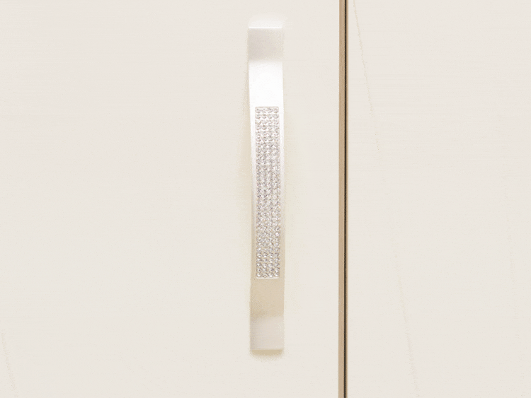 Одна дверца шкафа декорирована мерцающим глиттерным рисунком и кристаллами премиум-класса.