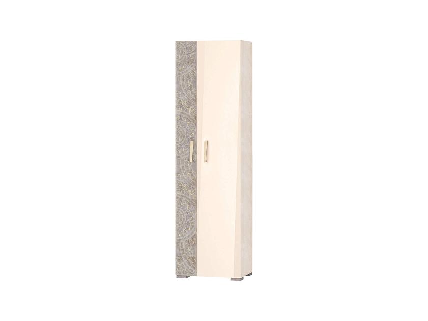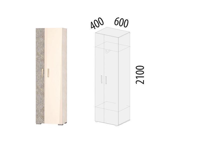 Шкаф для одежды «Фреска 48.01» является частью модульной программы прихожей «Фреска». Шкаф укомплектован двумя полками из ЛДСП и штангой для хранения одежды на плечиках. Дверцы оснащены петлями с доводчиками. Необходимо крепление к стене во избежание опрокидывания при открывании дверок (в фурнитуре есть крепежный уголок). Ножки регулируются по высоте, что позволяет компенсировать возможные неровности пола. Рисунок золотой патиной на фасаде в сочетании с ручками оригинальной формы придают изделию изысканный вид.