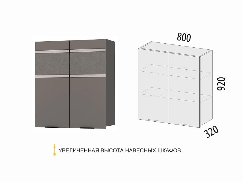 Увеличенная высота навесных шкафов позволяет эффективно использовать пространство кухни.