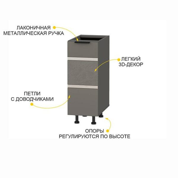 Модуль оснащен петлями с доводчиками для бесшумного закрывания дверец.