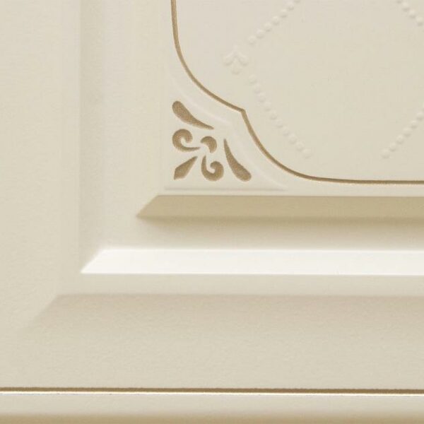 Фасад со вставкой выполнен из МДФ толщиной 16 и 6 мм, облицован пленкой ПВХ европейского производителя.