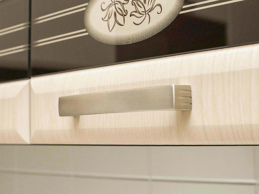 Модуль декорирован оригинальной фрезеровкой и стеклянной вставкой с рисунком.