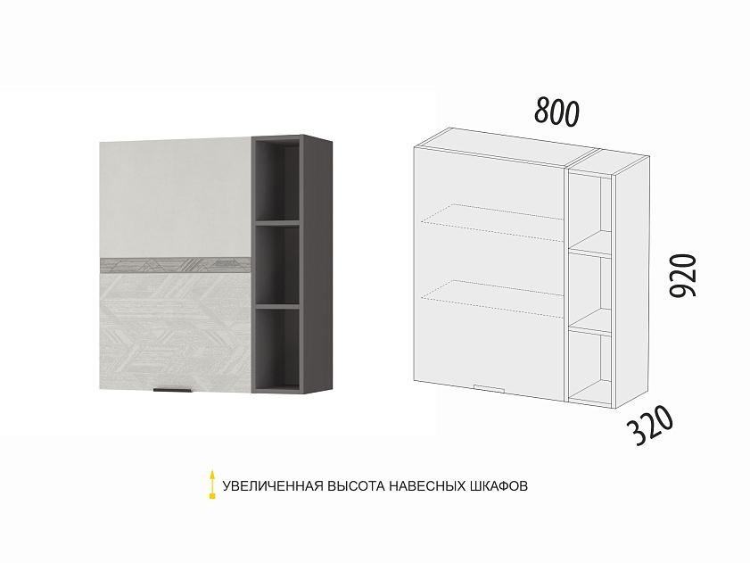 Дополнением к шкафу служат открытые полки, которые идеально подойдут для хранения специй, посуды и других полезных мелочей.