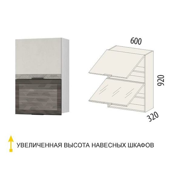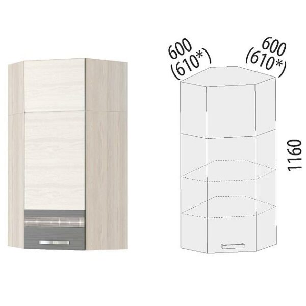 Шкаф кухонный «Дакота 67» является частью модульного набора для кухни «Дакота». Фасад шкафа оформлен легким 3D-декором с геометричным рисунком и древесной вставкой. Плавное закрывание дверцы обеспечивается петлями с доводчиками. Шкаф является универсальным и может быть собран как с левым, так и с правым открыванием дверцы. В комплект входит оригинальная ручка, по желанию можно установить ручку или открывать дверцу за счет свеса фасада. Дополнением к шкафу являются открытые полки, которые идеально подойдут для хранения специй, посуды и других полезных мелочей.