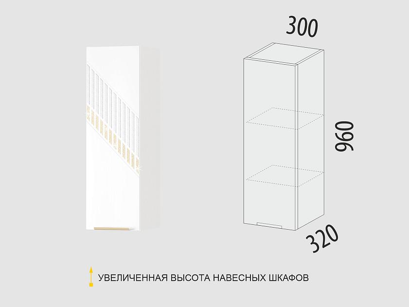 Увеличенная высота навесных шкафов 96 см создает впечатление большего объема и высоты кухни, делая помещение более просторным и светлым.
