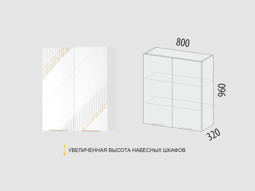 Увеличенная высота навесных шкафов 96 см создает впечатление большего объема и высоты кухни, делая помещение более просторным и светлым.