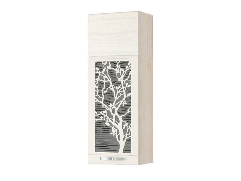 Фасад с решеткой дополняет образ стильной современной кухни, а также обеспечивает регулярную вентиляцию содержимого шкафа. 3D-эффект на фасаде, имитирующий текстуру коры дерева, подчеркивает оригинальный дизайн. Шкаф является универсальным и может быть собран как с левым, так и с правым открыванием дверцы. Плавное закрывание дверцы обеспечивается петлями с доводчиками. Дверца верхнего отделения шкафа оснащена подъемным механизмом с откидной системой Blum, который обеспечивает плавное закрывание дверцы и позволяет удержать ее в любом положении, и системой Push-to-Open — открывание и закрывание дверцы происходит без мебельных ручек с помощью легкого нажатия.