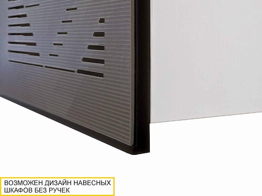 Актуальный серый цвет является универсальным и легко сочетается с различными цветами и фактурами. Объемное дизайнерское тиснение на фасадах подчеркивает современный стиль кухни.