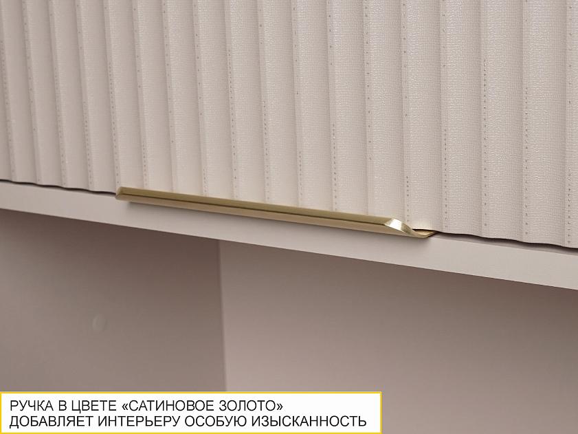 Гармонично подобранные цвета создают ощущение уюта и спокойствия, а акцентные ручки и оригинальные металлические вставки в цвете «сатиновое золото» придают мебели роскошный вид.