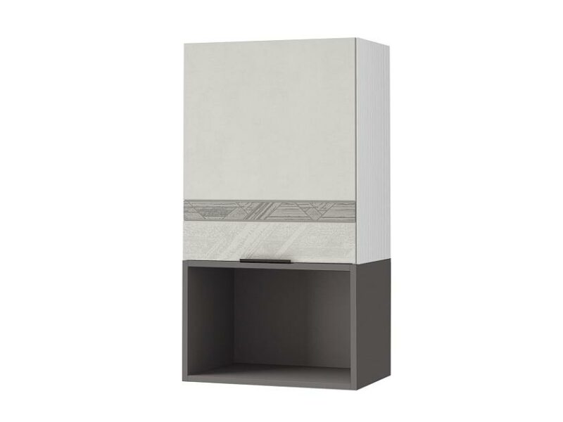Дополнением к шкафу служит открытая полка, которая идеально подойдет для хранения специй, посуды и других полезных мелочей.