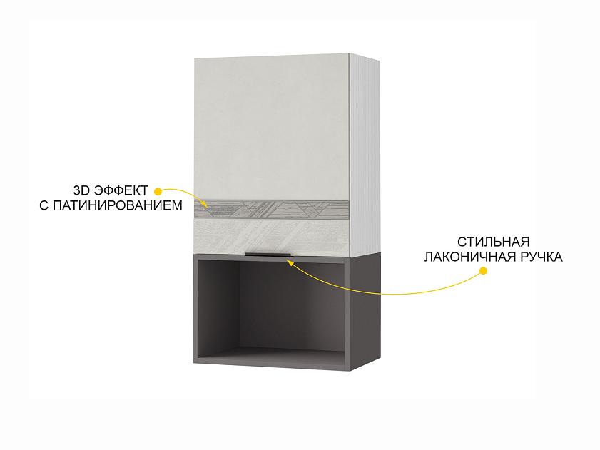 Актуальный серый цвет является универсальным и легко сочетается с различными цветами и фактурами. Объемное дизайнерское тиснение на фасадах подчеркивает современный стиль кухни.