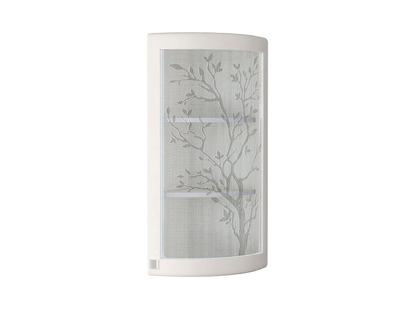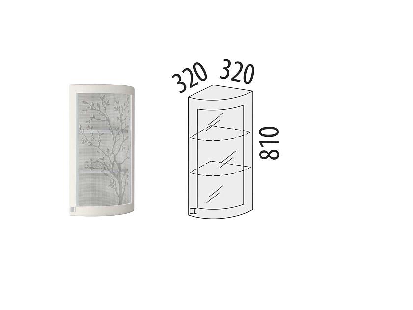 Радиусный фасад с рисунком на стекле придает кухне современный и стильный внешний вид.