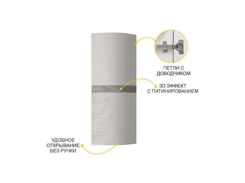 Боковая наружная стенка оформлена объемным 3D-декором с геометрическим рисунком и патинированный вставкой, что позволяет гармонично завершить образ кухни.