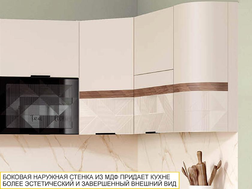 Радиусный фасад позволяет гармонично завершить образ кухни, а также придает современный и стильный внешний вид.