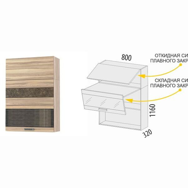 Современная и качественная фурнитура добавляет удобства и комфорта в использовании. Дверца шкафа оснащена петлями с доводчиками для плавного и бесшумного закрывания. Антресоль оснащена подъемным механизмом с откидной системой, который обеспечивает плавное закрывание дверцы и возможность удерживать ее в любом положении. Система открывания Push-to-Open позволяет открывать и закрывать дверцу антресоли с помощью легкого нажатия без использования мебельных ручек.