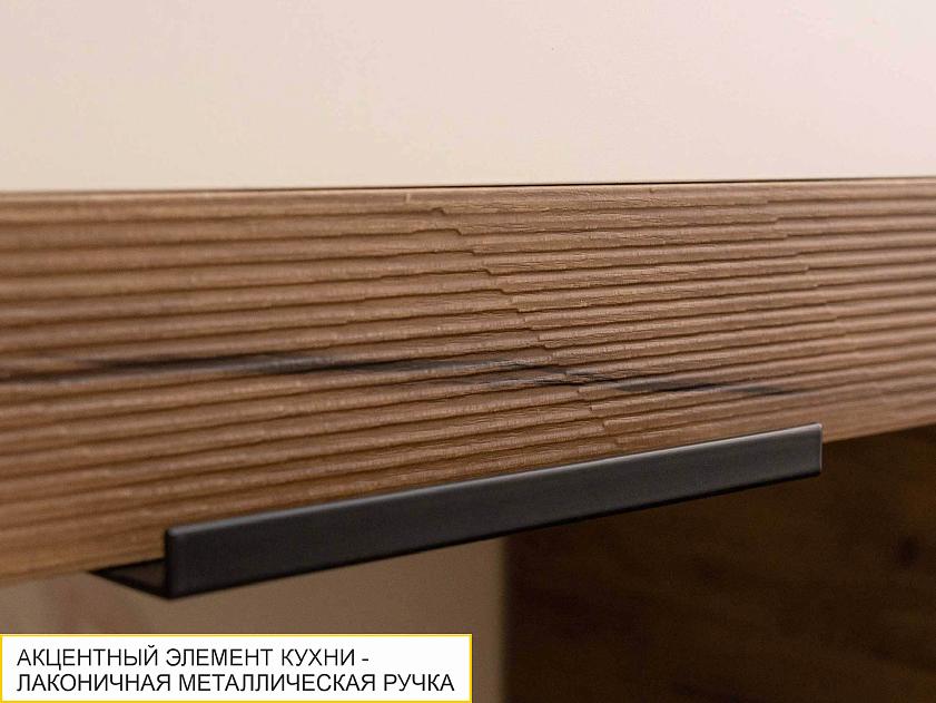 Лаконичная металлическая ручка прекрасно гармонирует с акцентными элементами в виде витрин и решеток. Ручка входит в комплект.
