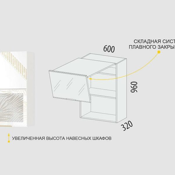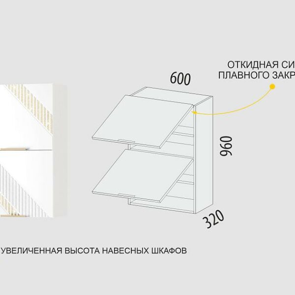 Подъемный механизм с откидной системой обеспечивает плавное закрывание дверцы и возможность удержать ее в любом положении.