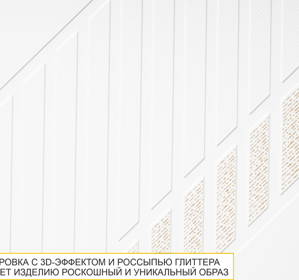 Коллекция «Монако» — это образец элегантного стиля и утонченного вкуса. Эффектная фрезеровка с объемным 3D-рисунком и россыпью глиттера подчеркивает эксклюзивный и уникальный вид изделия. Цвет верхних фасадов «Альпийский белый» визуально увеличивает пространство, делая его более светлым и воздушным. Он идеально сочетается с тёмными фасадами нижних шкафов, создавая эффектный контраст.