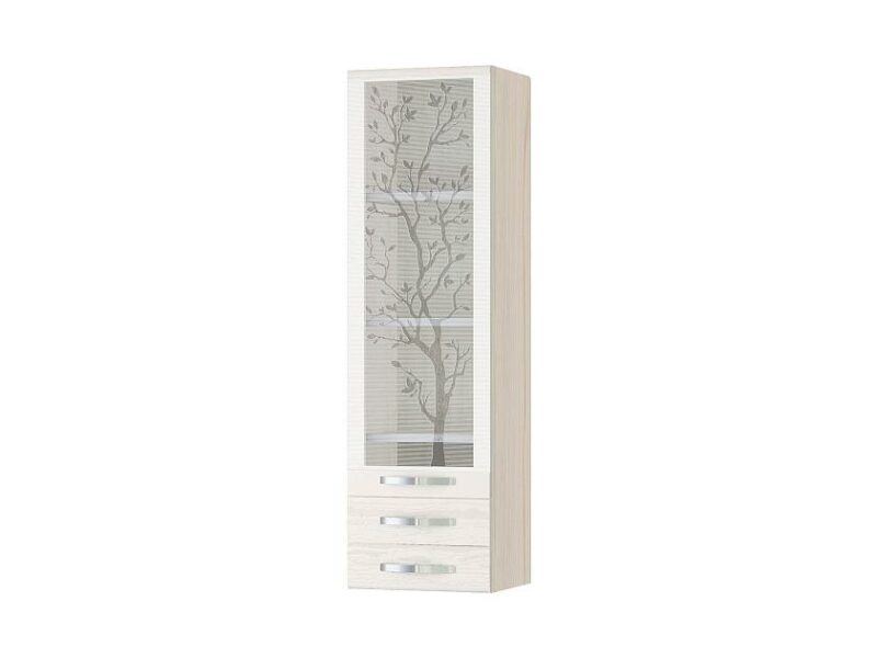 Фасад с рисунком на стекле придает кухне изысканный внешний вид.