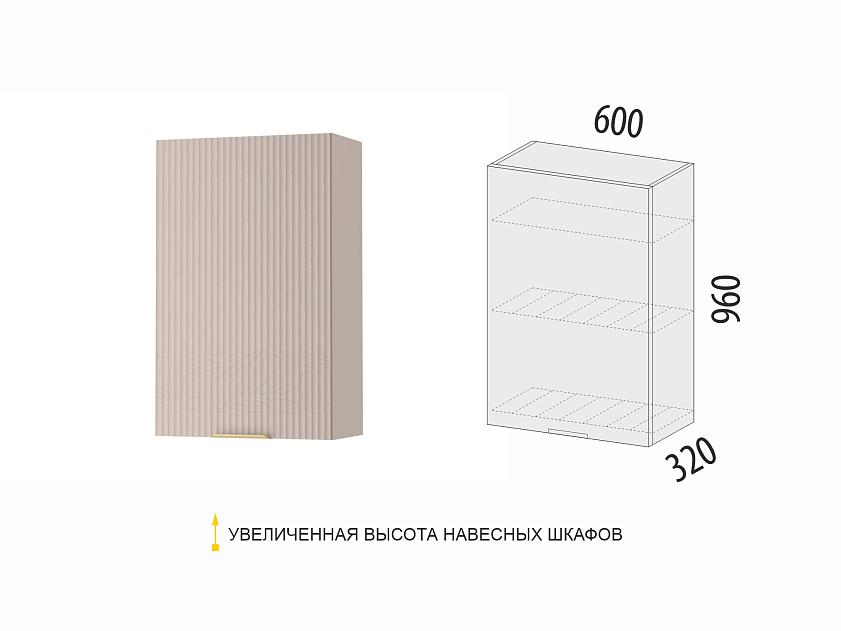 Увеличенная высота навесных шкафов до 96 см создает впечатление большего объема и высоты кухни, делая помещение более просторным и светлым.