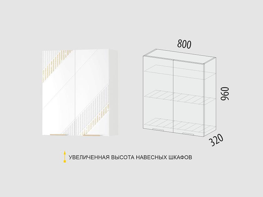 Увеличенная высота навесных шкафов 96 см создает впечатление большего объема и высоты кухни, делая помещение более просторным и светлым.