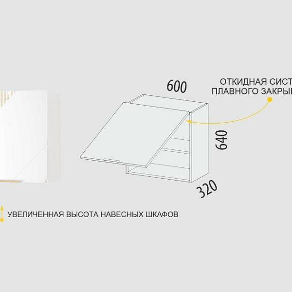 Дверцы шкафа оснащены подъемным механизмом со складной системой, который позволяет легким движением открыть сразу две дверцы.