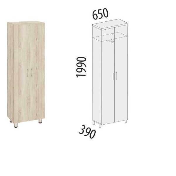 С учетом конструкции такое изделие может служить библиотекой, местом хранения документов и мелочей, гардеробной для сезонных вещей. Шкаф удачно сочетается с модулями из других коллекций «DaVita-мебель» в цвете «Дуб Кронберг».