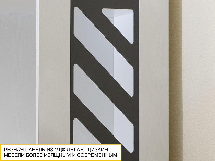 Фасад в цвете «Графит» декорирован объемным тиснением. Рельефная текстура придает дизайну мебели выразительности, создает глубину и приятные тактильные ощущения.
