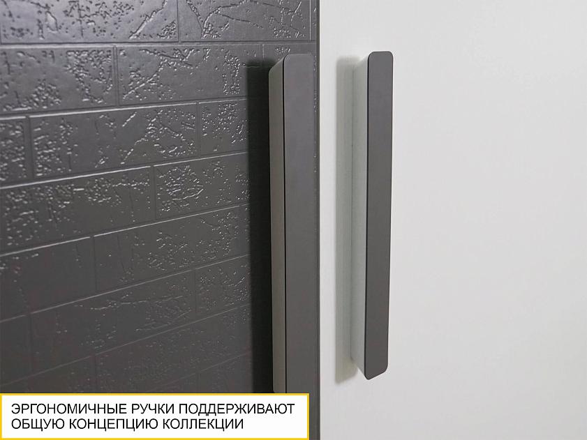 Фасад в цвете «Графит» декорирован объемным тиснением. Рельефная текстура придает дизайну мебели выразительности, создает глубину и приятные тактильные ощущения.