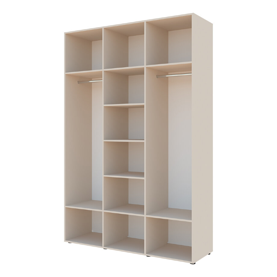 Шкаф может быть дополнен выдвижными ящиками, зеркалами, открытыми стеллажами и консолями, антресолями высотой 400 и 600 мм